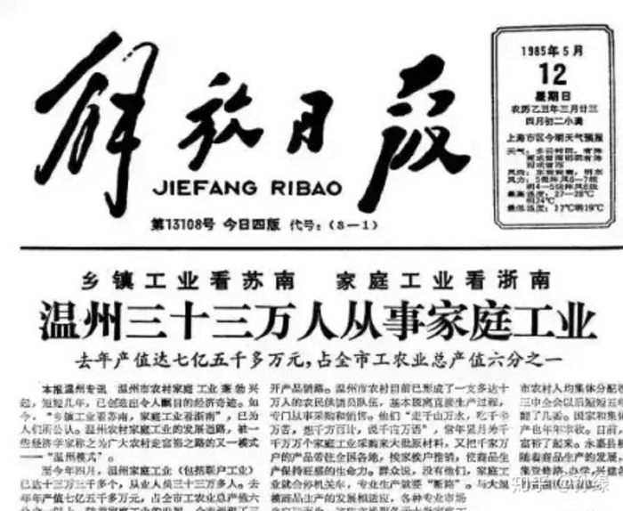 解放日报刊登的“温州模式”文章