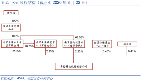 公司股权结构高度集中,董事长为实控人。公司董事长章安强通过香港多伦科技公司、南京多伦企业管理有限公司间接持有公司 67.11%的股权。公司整体股权结构高度集中,保障了公司战略的一致性。2019 年公司进军车检行业,在全国进行业务布局,这样集中稳定的股权结构有利于车检新业务持续深入拓展,也为公司未来可能的股权融资活动提供充足的摊薄空间。