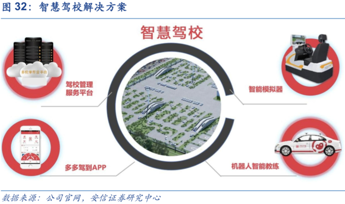 公司从2017年开始布局位于驾考行业上游的驾驶人培训业务,是市场率先开发智能化驾培模式的公司之一。公司产品致力于驾校数字化、智能化转型发展。在智能化层面,公司研发的机器人智能教练和智能模拟器以机器教学替代人工教学,以机器纠错替代人工纠错,以AI算法替代经验判断已经成为驾校减少人工成本、提高教学效率、改进教学服务体验。数字化层面,公司的驾校管理服务平台和“多多驾到”app通过信息化手段帮助驾校实现精细化管理,以SaaS为平台载体,以手机APP为服务窗口,将学员状态信息、学时对接系统、财务管理、行政后勤、营销招生、车辆管理等全部数字化、数据化,并在线进行实时动态的管理,实现经营管理服务全方位数字化。不仅可以高效率提供精准营销、优化教学、人性化服务和日常管理,而且可以重构价值链和商业模式,从而为驾校带来巨大的管理效益。
