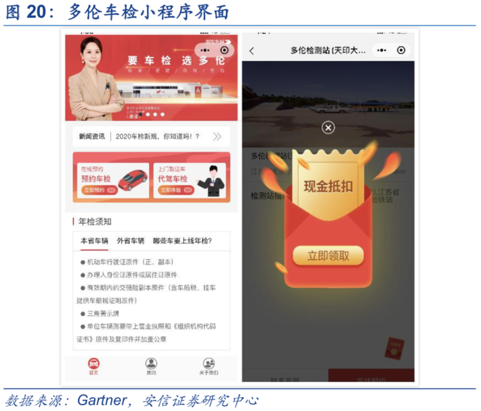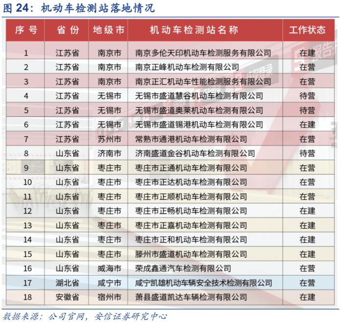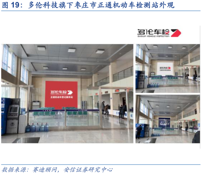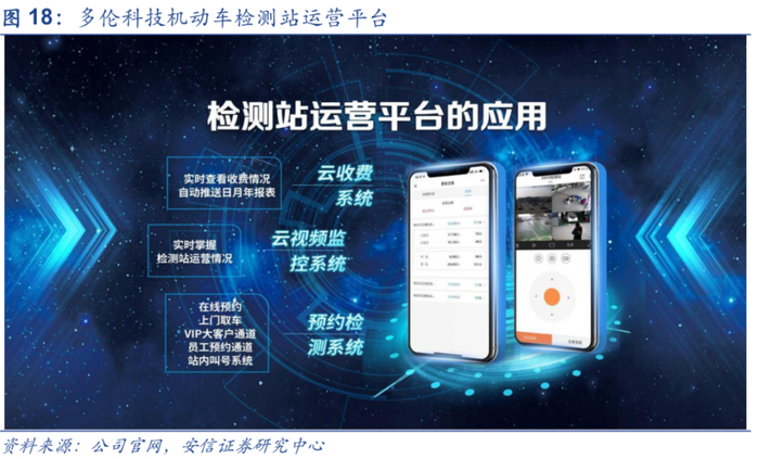 统一技术解决方案,有利于管理和服务质量统一:2019 年 7 月,公司收购了山东简蓝信息科技有限公司 65%股权,具备了提供机动车检测设备和检测系统的能力。目前在建和投入运营的车检站均引入了简蓝公司研发的云管理系统、大数据平台等智慧车检技术手段,可以提供新车注册、登记以及汽车保险、车辆违法处理等多项服务,充分满足车主的个性化需求。和传统机动车检测站相比,公司的检测软件系统高度自动化、智能化,帮助旗下检测站实现从拍照上传、远程查验到动态数据实时传输的全数字化运营,为车主提供更加稳定、可靠、快捷的机动车检测服务。