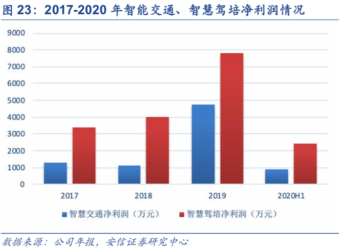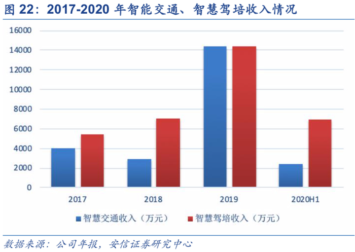 经营模式转型顺利,智慧驾培和智能交通业务成为公司业绩稳定支撑。公司是市场率先开发智能化驾培模式的公司之一,受益驾校经营模式改革,智慧驾培业务收入在过去两年实现高速增长。与此同时,伴随着智能交通建设在5G技术和“新基建”双重机遇叠加下的提速发展,公司和多地公安交通部门在智能交通领域新签订多个合同,为公司带来了超预期的业绩增长。