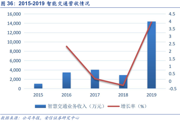 智能交通项目开拓超预期,有望成为公司业绩重要支撑。2019年,公司和南京、苏州、长春等多地公安交通部门在智能交通领域新签订多个合同,将公司智能交通解决方案正式投入市场,为公司带来了超预期的业绩增长。2019年公司全年实现营业收入 14,390.35 万元,较上年同期增长 394.61%。伴随着智能交通建设在5G技术和“新基建”双重机遇叠加下的提速发展,公司有关业务收入有望进入高速增长期。