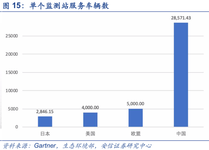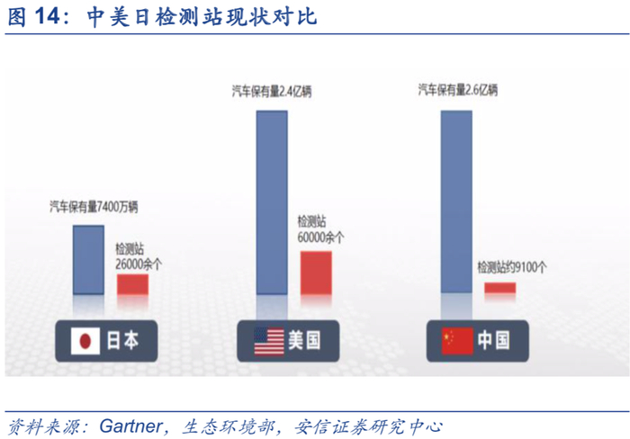 车检市场供小于求,检测站数量和服务质量亟待提高。截止2019年底,国内有1.3万个检测站,对应每万辆车拥有的检测站数量0.51个,远低于发达国家平均水平。检测站数量不足也对检测质量产生负面影响,前瞻产业研究院报告显示,北京一家检测站平均每天要检测近200 多辆,而国外单个检测站每天检测车辆大概20-30辆,相较而言国内检测站工作负荷高、每辆车平均检测时间短,容易产生客户预约困难、等待时间长、检测质量不高等问题。