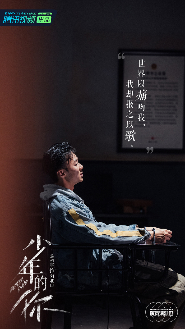 在节目第一次表演的舞台,施柏宇被划进S级演员(市场价值最高级别),选择了《少年的你》剧本,和同样是S级的任敏搭档,出演小北和陈念在派出所假装互不认识的桥段。片段刚一播放,不可避免会注意到施柏宇的台湾口音略显尴尬,但几分钟后,就能选择性忽略掉这个缺陷,尽管外形上有差异,但施柏宇演出了小北的倔强和悲悯,尤其是他对陈念大喊“滚!”时的样子,完全无法把他和《想见你》中的莫俊杰联系起来。