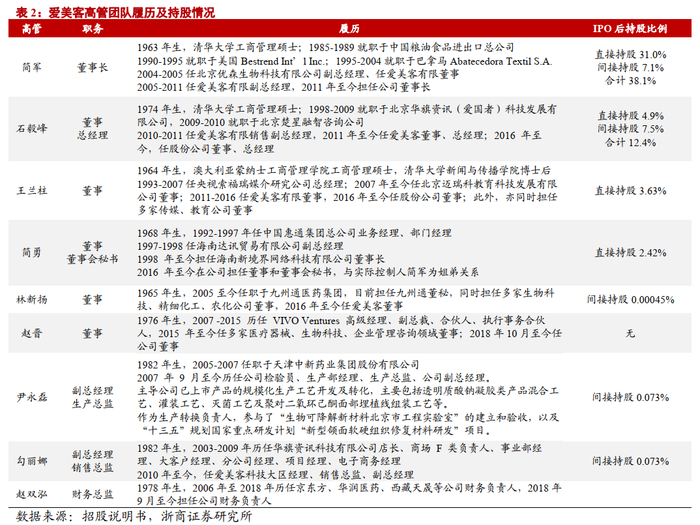 董事会成员背景丰富、具有国际视野及行业前瞻性,员工激励到位。公司董事会6名成员履历背景多元化、国际化,在生物医药、传媒、教育等领域都有深入涉猎。持股方面,IPO后控股股东、实际控制人简军女士直接持有公司30.96%股份,并通过丹瑞投资、客至上投资、知行军投资间接持有公司7.1%股份,由此合计持股38.1%,总经理石毅峰直接/间接持股比重合计也达到12.4%,另外公司早在2015年8月已经开展员工股权激励,设立员工持股平台客至上投资、知行军投资,两者合计持有上市公司10.7%股份,分别由16/15名公司高级管理人员、销售骨干人员、技术骨干人员和部分入职年限较长的员工作为有限合伙人,并且本次IPO中72名核心高管及管理人员参与的战略配售计划持股9.16%,与核心员工分享公司成长红利。