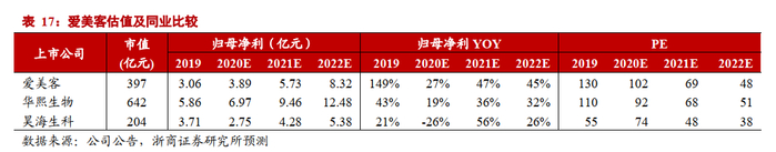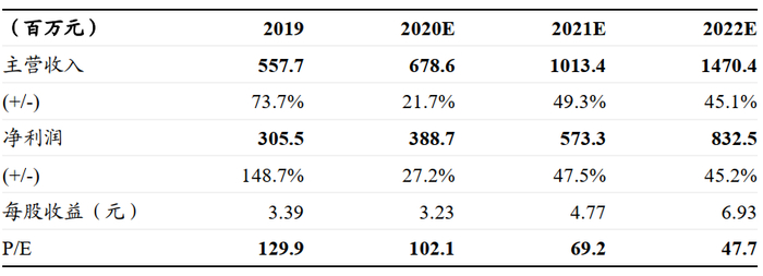 我们预计2020/21/22年公司收入同比增长22%/49%/45%至6.8/10.1/14.7亿元,归母净利同比增长27%/48%/45%至3.9/5.7/8.3亿元,对应当前市值PE为102/69/48X,公司在注射医美领域竞争优势明显、产品及产能储备充足,具备长足增长潜力,值得重点关注,考虑当前估值与同业对比,首次覆盖给予“增持”评级。