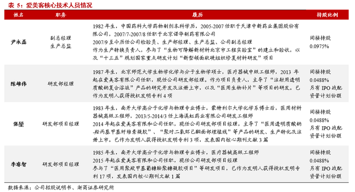 研发持续大力投入,核心技术人员给予多维度激励。公司基于产、学、研、医一体化的研发模式密切关注国内外最新研究成果,紧盯国际医用软组织修复材料以及生物医药的发展动态与研究方向,并通过建设生物可降解新材料北京市工程实验室,搭建了生物医用材料产品转化平台,目前公司拥有多组分复合仿基质水凝胶技术、固液渐变互穿交联技术、水密型微球悬浮制备技术、组织液仿生技术、恒水精准切割技术等核心技术,作为牵头单位参与了国家科学技术部规划国家“十三五”重点研发计划“新型颌面软硬组织修复材料研发”项目,拥有专利 37 项,其中包括发明专利20 项,截至2019年公司研发费用达到4856万元,占收入比重高达8.7%。
