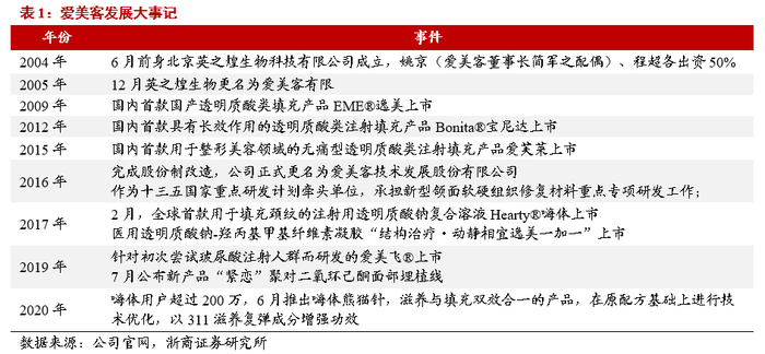 1. 爱美客简介:专注生物医用软组织修复材料,注射医美领域成果丰硕
