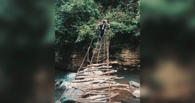 依赖一架用藤条和木棍编成的17段“天梯”