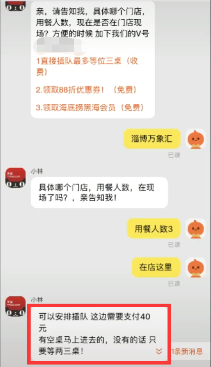 记者实测花40元可插队! 海底捞:没这项服务