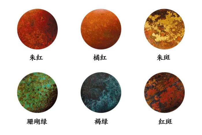 用特殊矿物料和草本植物配置成原料,运用敷煮浸泡,火烧烤制等多种工艺手法,给铜胎反复上色呈皮,最后达到炉面色泽晶莹而温润,有如婴儿肌肤般的触感。
