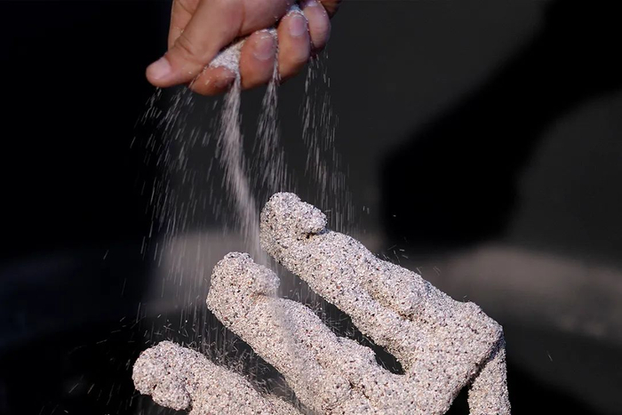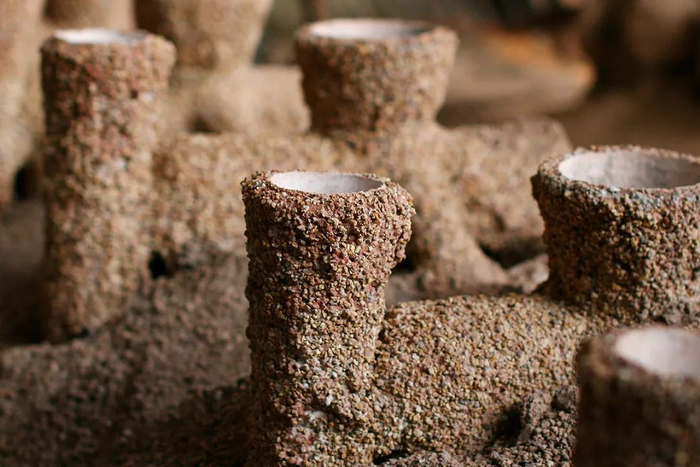 将炭灰和粘合细浆按比例调成湿浆后涂在蜡模表面,再将石英砂按细到粗的顺序挂在蜡模表面,经过多次反复挂砂和硬化,形成坚硬的外壳。