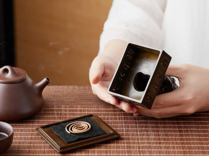 底座配有防火垫,可燃盘香、锥香、短线香。
