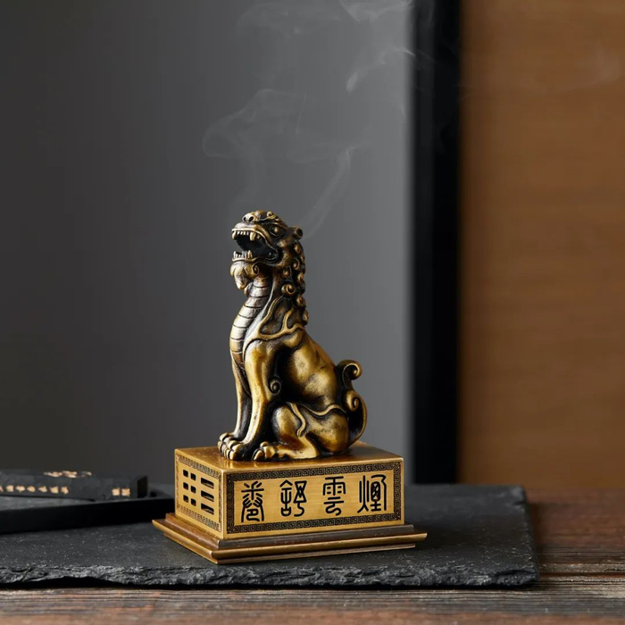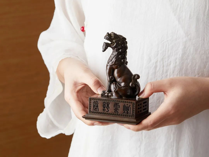 兽身为中空设计,燃香时,烟气会通过兽身从兽嘴冒出,既精妙又有趣。