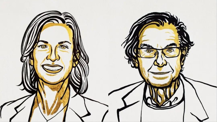 2020诺贝尔物理学奖得主罗杰•彭罗斯和化学奖得主詹妮弗·杜德纳(左)