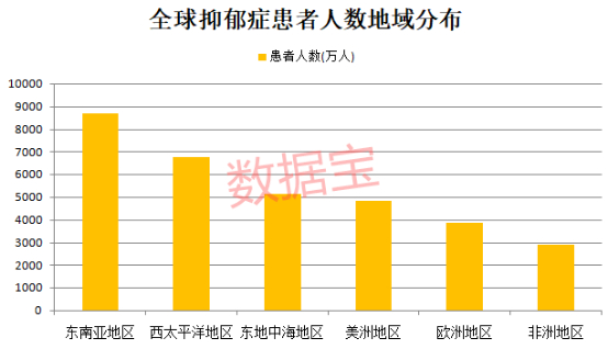 分地域看,世界卫生组织公布的最新统计数据显示,全球抑郁症患者中,有近一半生活在东南亚地区和西太平洋地区,包括印度和中国。