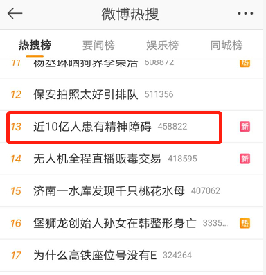 今天是世界精神卫生日,一则“近10亿人患有精神障碍”新闻冲上热搜。