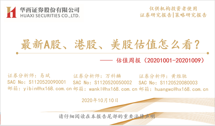证券研究报告:《最新A股、港股、美股估值怎么看?-20201009》