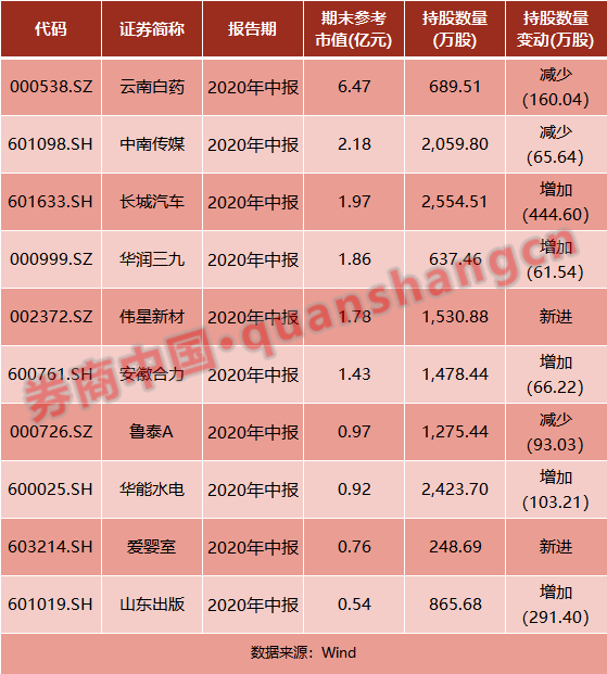 香港金融管理局-自有资金在最新报告期2020年中报共出现在10只A股股票的十大股东之中,期末参考市值合计为18.88亿元。持股市值最高的三至股票为云南白药、中南传媒和长城汽车。