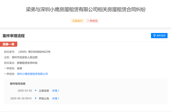 天眼查数据显示,深圳小鹰房屋租赁有限公司成立于2019年9月27日,公司现有一起房屋租赁合同纠纷。