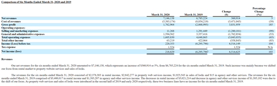 同时,招股说明书中提到其物业网络服务和锁具销售分别于2019年下半年和2020年初推出,这两个业务线在截至2019年3月31日的前六个月内没有收入。