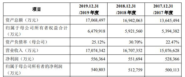 益海嘉里招股书显示,2017年至2019年,益海嘉里的营业收入分别为1507.66亿元、1670.74亿元和1707.43亿元,分别同比下滑12.94%、10.82%和2.20%;归母净利润分别为50.01亿元、51.28亿元、54.08亿元。