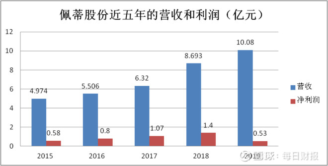 从盈利的角度来说,过去五年,中宠股份收入和净利润的增长速度并不是特别突出,营业收入从 2015年的6.48亿元增长到2019年的17.16亿元,净利润从2015 年的0.56亿元增长到2019年的0.79亿元。