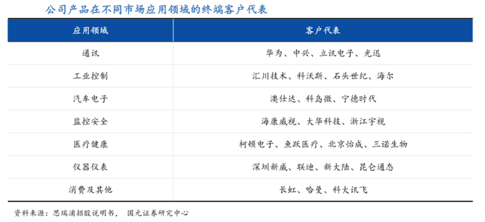 公司产品已进入众多知名客户的供应链体系,其中不乏中兴、海康威视、哈曼、科大讯飞等各行业龙头。尤其在信号链模拟芯片领域技术水平突出,代表公司先进技术水平的核心产品,如全高清视频滤波器、零漂运算放大器、主流能耗控制芯片和接口产品,已通过诸多国内知名企业的验证,实现进口替代。
