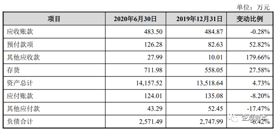 据招股书显示,2020年6月末,公司总资产为14,157.52万元,同比增长4.73%,主要原因为子公司英麦迪固定资产及在建工程增加。2020年6月末,公司负债总额为2,571.49万元,同比下降6.42%。由于2020年初发放了2019年末计提的员工奖金,应付职工薪酬大幅减少。受新冠疫情影响,公司销售收入大幅下降,应交税费减少。