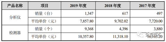 与此同时,针对检测器,该公司也是用同样的销售策略,2018年检测器产品单价增幅达12.02%后,但该年销量大受影响,2018年只卖出了4396个检测器。而2019年为保IPO冲业绩,同样也是通过销售单价大幅下调,从而使得2019年检测器的销量达到翻倍的增长。报告期内,检测器的平均销售单价分别为 10103.2元、11318.1 元、10357.8元。不难看出,2018年以来呼气分子诊断仪器和检测器的价格都在下降。