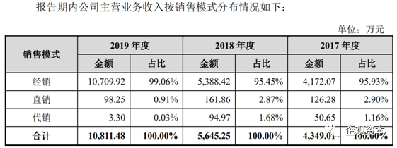 据招股书显示,尚沃医疗主要以经销模式为主,报告期各期占比均在95% 以上。对于少数标杆医院科室及体检机构等终端客户采取直销或代销模式,报告期内公司直销或代销模式占销售收入的比例低于5%。经销商代理的销售模式下,公司事先对经销商进行资格审查,在满足公司的各项要求后确定代理经销资格,并根据销售合同将产品销售给经销商。经销商购买产品后即取得产品的所有权,再由其将产品最终销售给医院。