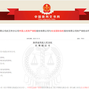 10月10日,陕西省高级人民法院发布的民事裁定书显示,支持一审判定,驳回人保武汉分公司上诉,维持原裁定。根据一审的(2020)陕01民初149号民事裁定,人保武汉分公司、人保需共同赔偿长安信托8.21亿元。