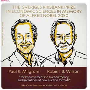 中新网10月12日电 据诺贝尔奖官网消息,当地时间12日中午,瑞典皇家科学院将2020年诺贝尔经济学奖授予保罗·米尔格罗姆(Paul R. Milgrom)和罗伯特·威尔逊 (Robert B. Wilson),以表彰他们“对拍卖理论的改进和新拍卖形式的发明”。