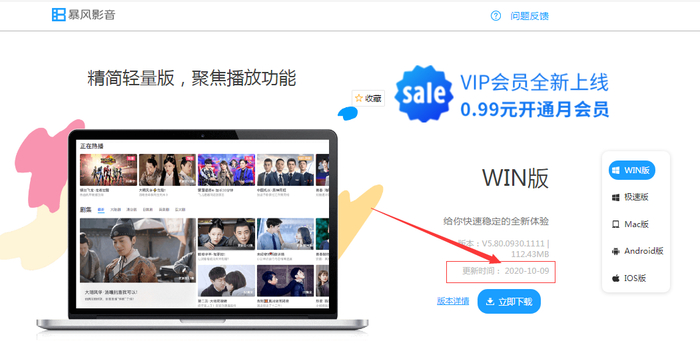 10月9日,该网友登录暴风影音官网发现,电脑端WIN版最新更新时间是9月26日。而目前,暴风影音电脑端WIN版最新的更新时间是10月9日,也就是说半个月内就有两次更新。