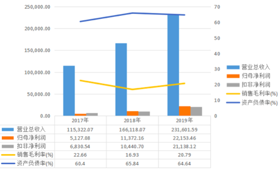 资产负债率方面,2017年末、2018年末及2019年末,该公司资产负债率分别为60.40%、65.84%和64.64%,资产负债率颇高。对此,奥海科技曾在招股书内做出解释,高资产负债率是由于公司产销规模增加较大,导致营运资金增加较多,而公司主要采用银行间接融资的方式融资。