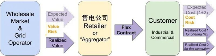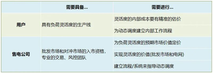 2.工业和大型商业用户通常青睐专门为自身用电特色或商业模式定制的产品,而且可能愿意接受较大尺度的市场风险。此外,一些工商用户的设备具有一定的运行灵活度,可以将工业用户生产线的“灵活度”,在现货市场“变现”,或提供给“调度”能力。