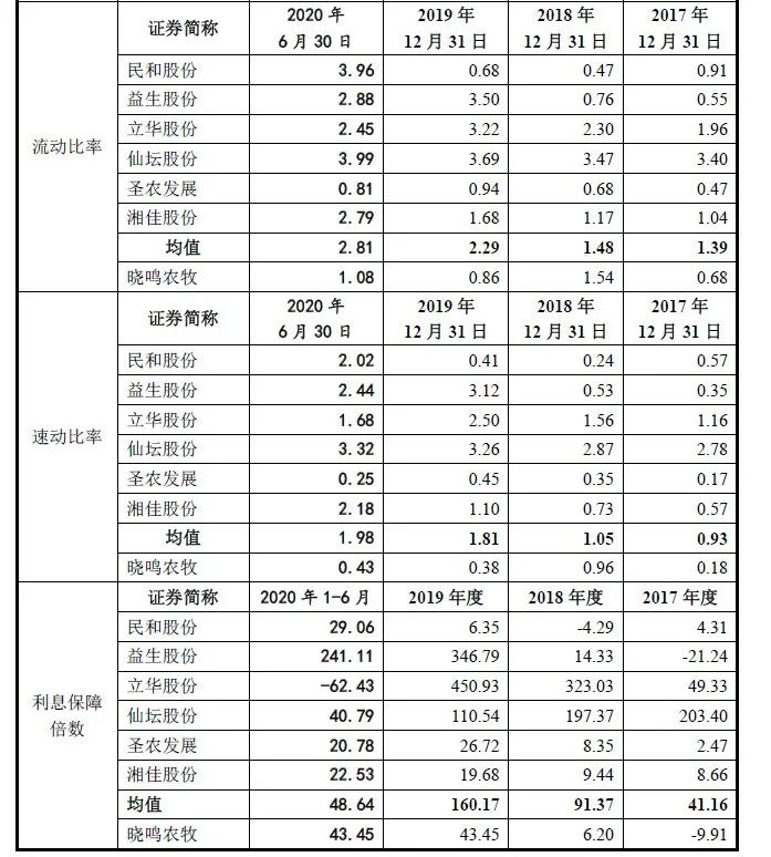 从流动比率、速动比率和利息保障倍数来看,晓鸣农牧偿债能力欠佳,资金方面亦存在抗风险能力不足的情况。