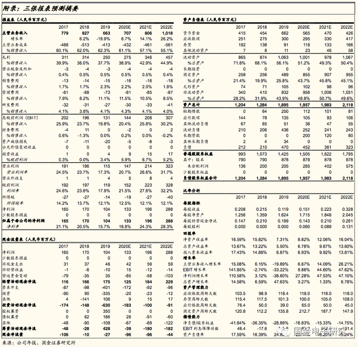 根据前述假设,我们估算公司2020~2022年营收将达到7.1亿元、8.1亿元和10.2亿元,三年复合增速达到15%。