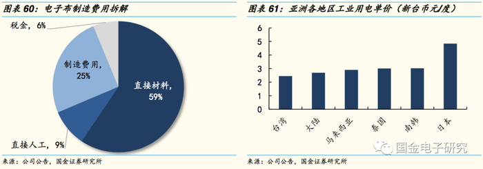 能源成本优势难以被打破。我们认为公司在成本管控上的优势除了来自于自身的管理效率外,同样还有一些难以被打破的因素,比如日本比大陆地区电费高80%左右,而电子布营业成本中有25%来自于制造费用,制造费用中又有53%来自于电费,因此这一成本优势将十分稳固。