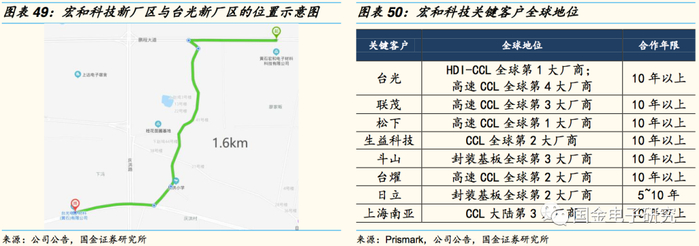 公司是由台系的宏仁集团控股,凭借着台系CCL/PCB产业崛起趋势、母公司的商业关系和自身的技术积累,沉淀了优质的客户资源,客户几乎覆盖了全球所有的中高端CCL主流厂商,并且公司的主要客户在未来将进入扩产的高峰期,扩产的地点大多都选在了大陆地区,公司也做了一些配套的扩产计划,在黄石设立了新工厂(公司黄石工厂邻近关键客户台光在黄石地区的新产能),而其他竞争对手的工厂仍然在日本或者台湾地区居多,对比来看公司有望在未来与客户形成更紧密的合作关系,从而获得更多的市场份额。
