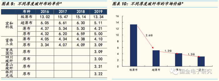 2.1、厚布到超薄布价格有传导性,极薄和特殊材料电子布价格稳定