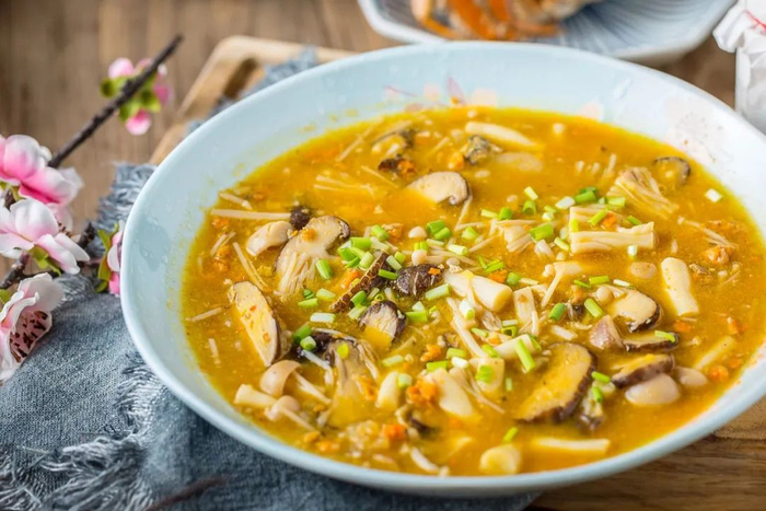 不能错过的还有蟹黄豆腐羹,秃黄油的鲜香能与嫩滑的豆腐完美相融。