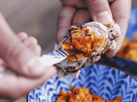 制作时要历经蒸煮、拆蟹、熬制等工序,每一步都需要手艺人的经验和耐心。