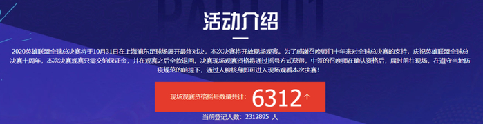 2312895人!这是截止发稿时,预约今年英雄联盟全球总决赛最终战门票的人数,而能够中签的,只有6312个幸运儿。