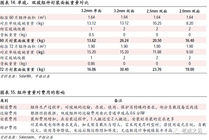 双玻组件对玻璃提出减薄要求:与单玻组件相比,双玻组件因正反面两块封装玻璃明显增加了重量,带来了制造、运输、安装、维护等各项成本的提高,因此行业内对光伏玻璃提出了降低厚度的要求。目前单面组件多采用3.2mm厚度的光伏玻璃作为封装面板,据CPIA统计,2019年3.2mm的前盖板玻璃市场占有率约为76.8%,随着组件轻量化和新技术的不断产生,2.8mm及以下规格的前盖板玻璃市场份额将逐步提升。双玻组件光伏玻璃主要规格为2.5mm、2.0mm,目前主流产品规格为2.0mm。