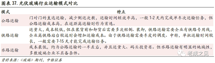 玻璃原料采购及销售运输成本较大:光伏玻璃的原料及成品运输一般分为公路运输、铁路运输、水路运输3种形式,其中水路运输成本最低,约为公路运输成本的一半,但有明显的地域性,多数玻璃企业不具备条件,目前公路运输为主要运输形式。在原料采购环节,从矿山到仓储需要经过短倒、运输到厂、卸车、倒运、存放等多个环节,且受制于原料包装方式,部分环节仍需人工装卸,增加了管理难度和运输成本,根据《玻璃》期刊,运输费用构成了玻璃原料采购费用的主要部分;在成品运输环节,玻璃制品为易碎品,运输成本高、装卸风险大、手续办理繁琐、破损率高,对包装及物流有很高的要求,运输过程也需安排专人专车运输,光伏玻璃的运输成本约为1元/m2。