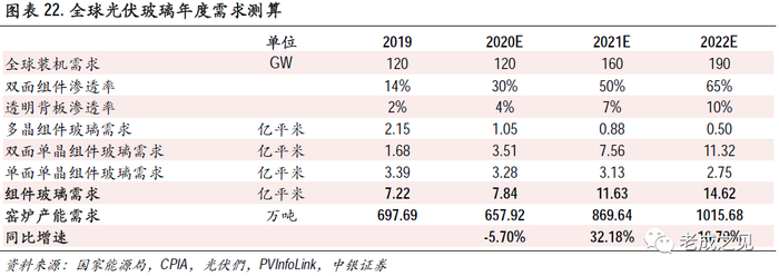 1.5 预计2020年全球光伏玻璃需求约658万吨,2021年增速有望超过30%