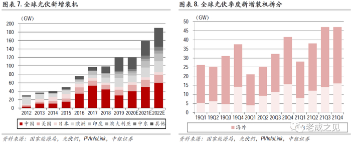 海外需求底部确立,后续景气有望持续:目前欧美、澳洲、日韩等重点光伏市场的需求量已经缓步恢复,全球光伏市场在二季度末呈现了需求向好的态势。综合考虑全球各区域疫情发展情况及疫情对光伏电站建设的影响情况,我们预测2020年海外需求约80GW,同比下降约11%;全球装机约120GW,同比持平;季节层面有望呈现连续环比上升的态势。2021-2022年需求有望分别达到160GW、190GW,恢复正常增长。