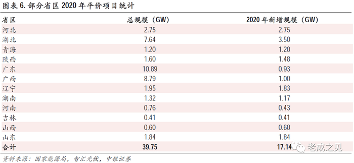 平价项目逐步释放:2019年5月,国家发改委、国家能源局发布《关于公布2019年第一批风电、光伏发电平价上网项目的通知》,其中光伏发电项目总量14.78GW。根据我们统计,拟建光伏项目中约4.5GW明确给出预计于2019年并网,大部分项目的预计并网时间为2020年内。此外,近期多个省区公布了平价上网项目申报名单,总量约40GW,其中2020年内开工项目约17GW。