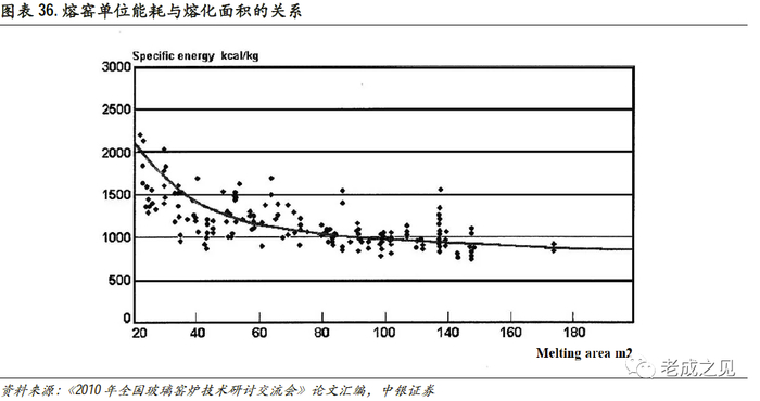 大窑炉可有效降低单位能耗:规模化的生产线有助于提高生产效率和成品率,并由于自动化程度较高可减少单位员工数量,从而降低单位能耗。大窑炉生产线已成为行业的发展趋势。据CPIA统计,行业平均单窑规模从2010年的232吨/日增加到2018年底的535吨/日。近几年新增以500吨/日以上的窑炉为主,目前最大在产熔窑产能达到1,000吨/日,最大拟建熔窑产能达到1,200吨/日。以福莱特1,200吨/日窑炉为例,其成品率86%,高出行业主流成品率78%约8个百分点,单位能耗可比普通窑炉降低15%-20%。但另一方面,我们也应注意到,当熔窑面积>125m2时,单位能耗下降斜率变缓,意味着技术升级带来边际效益递减,在未来没有大的技术突破情况下,管理能力或将成为区分优质公司的重要因素。